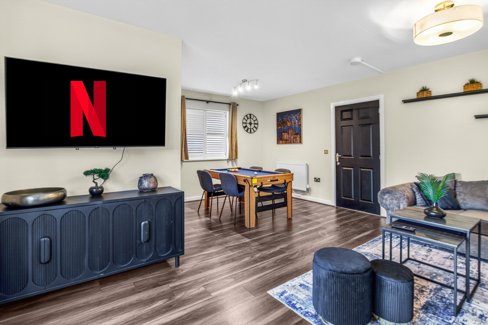Perfect for contractors, trades teams, project teams, travelling professionals and relocators. Our property is ideally located near the A1 and M1, making it the perfect base for professionals and travellers looking for easy access to major routes and just 7 minutes drive to the Universal Studios site in Kempston Hardwick. Ideal for access to Bedford (5 mins), the Universal Studios site (7 mins), Milton Keynes (20 mins), St Neots (25 mins), and South Beds. This is the perfect home from home for up to 10 people. Our place in Shortstown offers a perfect blend of comfort and convenience. The property features five double bedrooms, all with zip-link beds that can be set up as king-size or twin configuration — perfect for large families or groups travelling on business. The modern kitchen is fully equipped with all the essentials for home cooking, including an air fryer, slow cooker, smoothie blender, and microwave. Prepare meals with ease and enjoy them in one of two dining areas. The living area offers plenty of space for work, rest, and play, with a pool table, table tennis, a selection of books and games, and a large seating area with a smart TV and Netflix. The property has 3.5 bathrooms including one en-suite. For peace of mind, the property is professionally cleaned before every stay and includes fresh hotel-grade linen and towels. All bills are included.